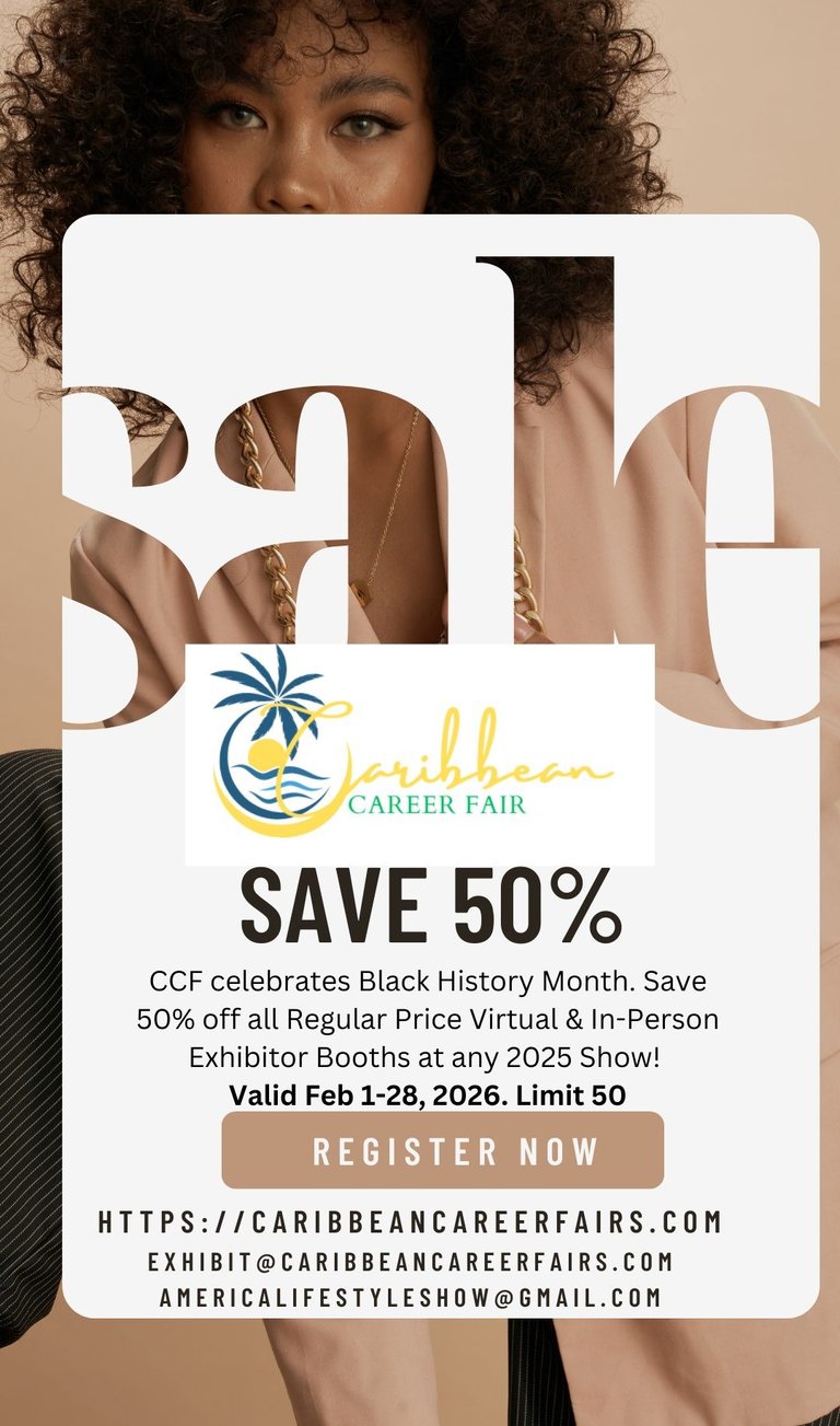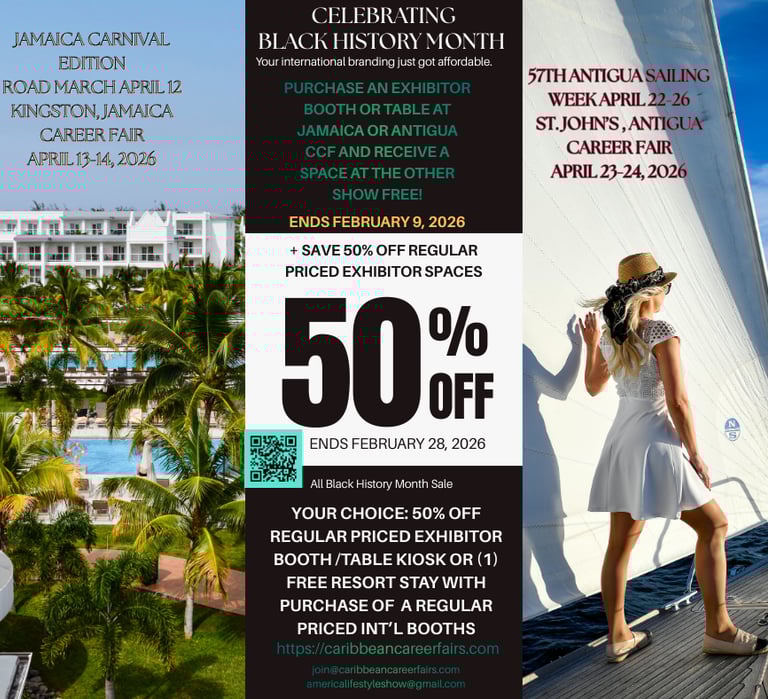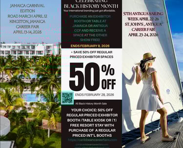 Plus take advantage of up to 50% Off. Only 10 Booths left at selected Caribbean Career Fairs